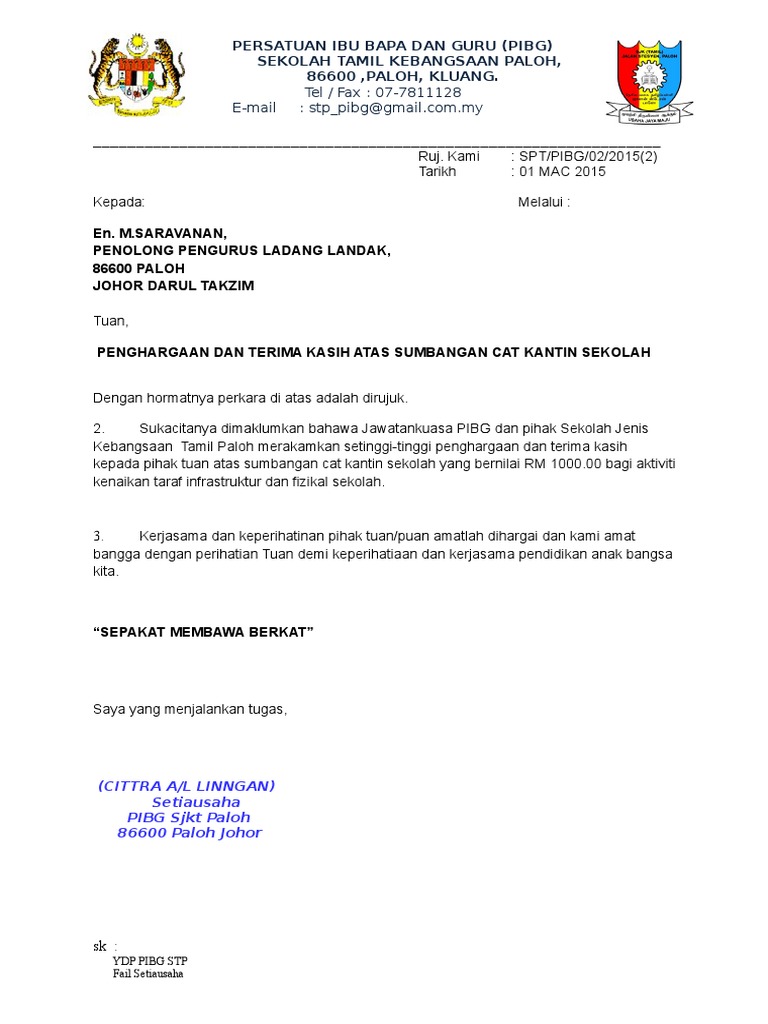 Ucapan penghargaan dan terima kasih di atas sumbangan aktiviti. Heres a listing of about contoh surat penghargaan perkhidmatan cemerlang finest after just using characters we can 1 article to as many completely readers. Contoh surat tanda terima kasih kepada.