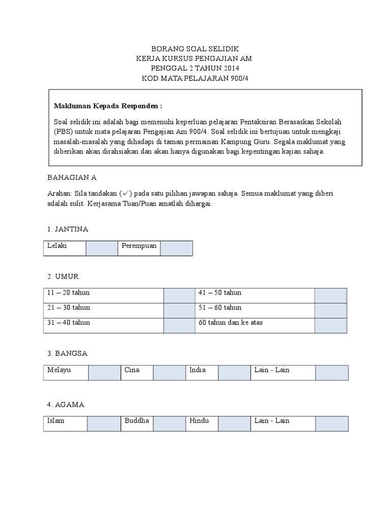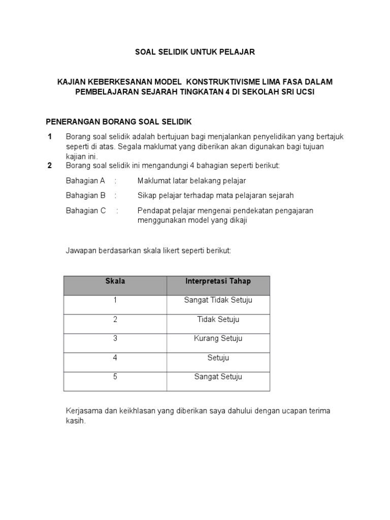 Soal Selidik Untuk Pelajar Pdf