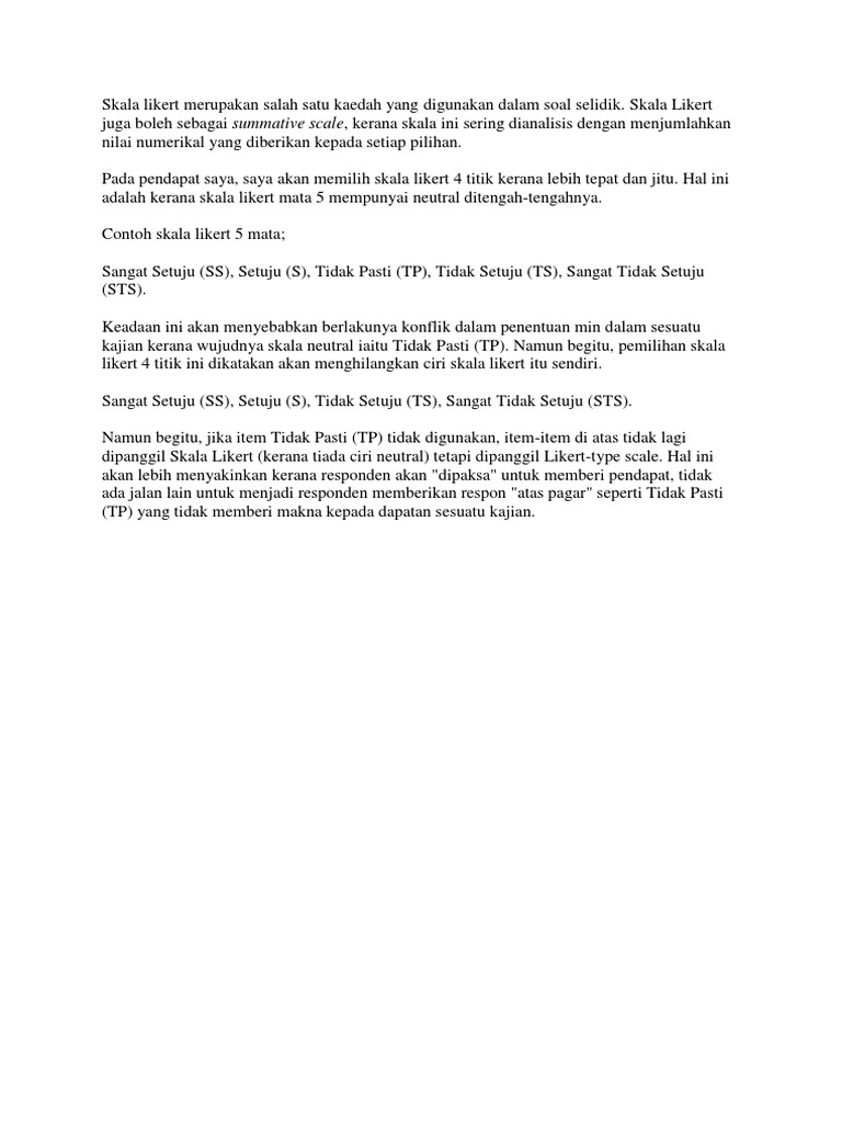 Skala Likert Merupakan Salah Satu Kaedah Yang Digunakan Dalam Soal Selidik Pdf